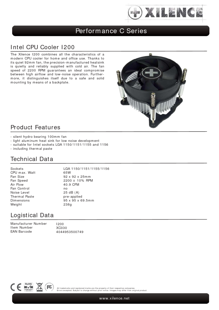 Xilence Xc030 I200 Cpu Cooler 1200 1156 1155 1151 1150 Performance C I200