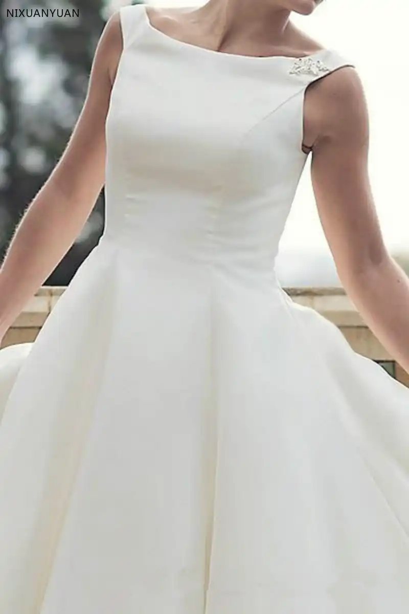 Cheap Simple Boat Neck Ball Gown Satin Sleeveless Short Tea Length Reception Women Second Wedding Bridal Wedding Dresses Wedding Dress Bridal Wedding Dresstea Length Aliexpress